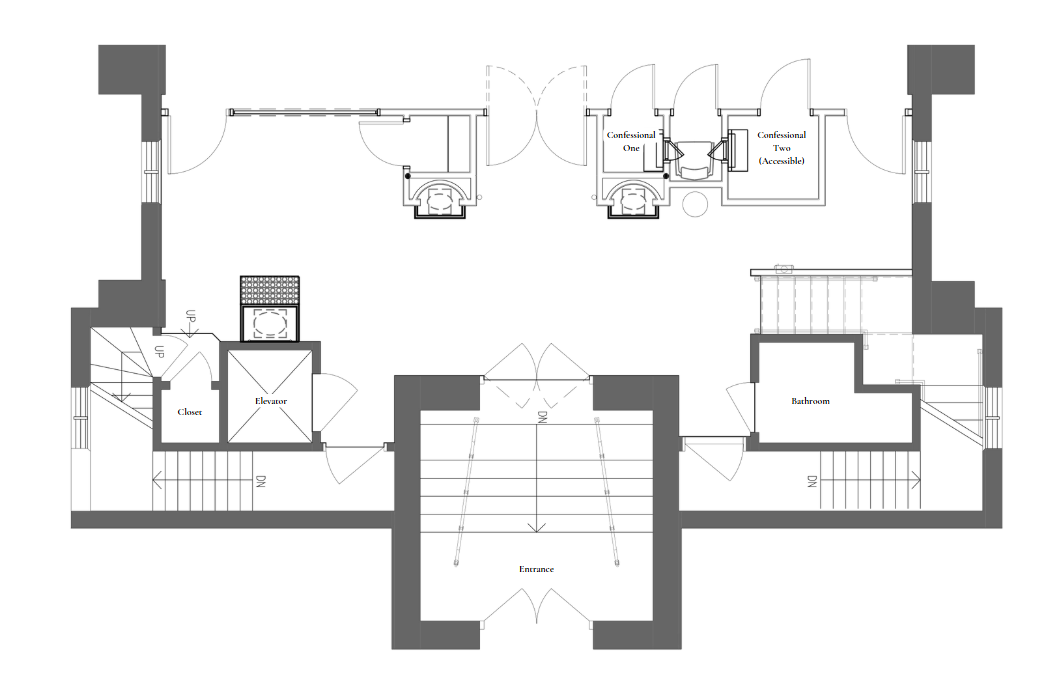 We will be creating a narthex which will include upgrades to the lighting and ceiling. It will be a space to transition from the profane to the sacred, making a convenient area to gather for social interaction after Mass and other liturgies. The narthex will also provide a space where parents may retreat with their children, while continuing to participate in Mass.